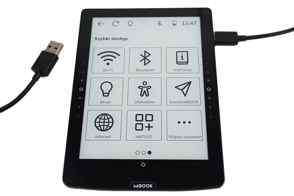 Najbardziej oczywista metoda to podłączenie czytnika inkBOOK do komputera za pomocą kabla USB. Po chwili na ekranie pojawi się opcja wyboru trybu – należy wskazać przesyłanie plików. Następnie komputer wyświetli pamięć czytnika, gdzie wystarczy skopiować e-booki do folderu Books. Po odłączeniu inkBOOK automatycznie rozpozna nowe pliki i doda je do biblioteki. To najszybszy sposób, aby bezpośrednio przenieść własne książki i mieć je od razu gotowe do czytania.