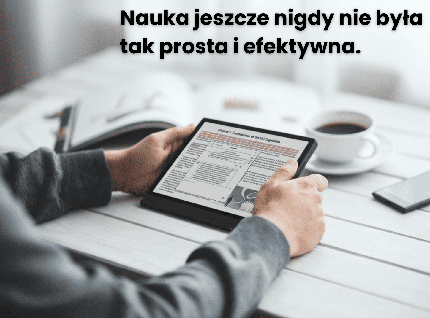 Onyx Boox Note Air 5 C wspiera Twój rytm dnia – od pierwszych notatek po wieczorne planowanie. Wydajny procesor i energooszczędny ekran E Ink pozwalają działać przez wiele dni bez ładowania. Funkcja podziału ekranu ułatwia naukę i pracę: czytasz tekst, analizujesz dane i robisz notatki jednocześnie, zachowując pełną płynność działania.